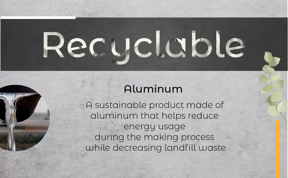 ECO-FRIENDLY. A sustainable product made of recycled aluminum helps reduce energy usage during the making process while decreasing landfill waste.