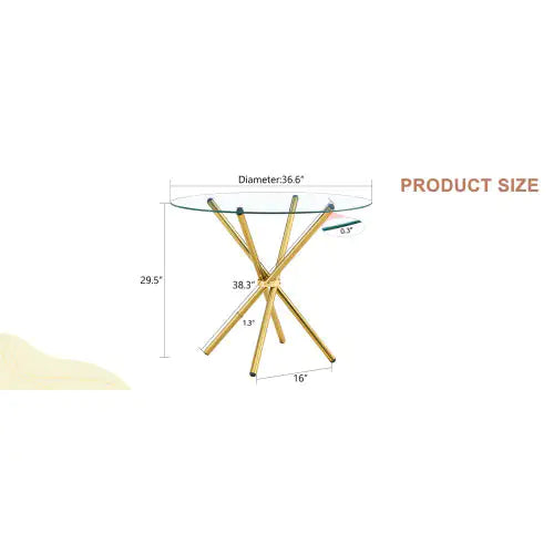 Round Clear Glass Dining Table With A Unique Shape For 4-6 People, Ring-shaped Gold Metal Legs, Suitable For Desks, Kitchens, Terraces, Dining Rooms. Unavailable Platforms- AliExpress
